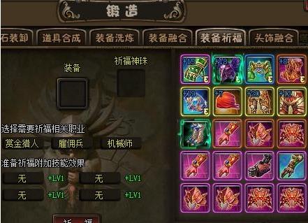 戰甲祈福介紹,當玩家角色到達35級,在鍛造面板中會出現祈福功能,用於強化職業技能,除寵物、頭飾、副甲裝備外的所有裝備均可祈福。